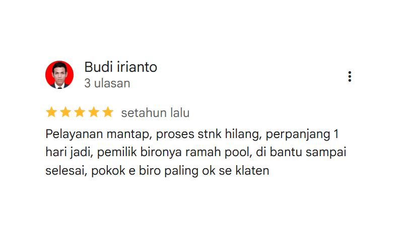 Ya, kami dapat membantu pengurusan STNK kendaraan luar kota selama dokumen lengkap. Layanan kami mencakup berbagai wilayah di Pulau Jawa dengan proses yang aman dan terpercaya.